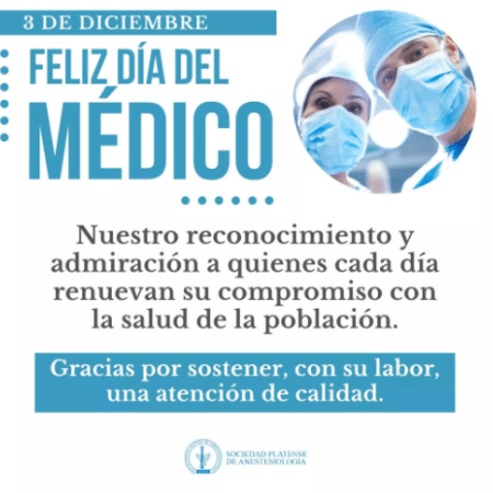 La Sociedad Platense de Anestesiología saludó los colegas en su día y agradeció «su dedicación diaria por una mejor atención»