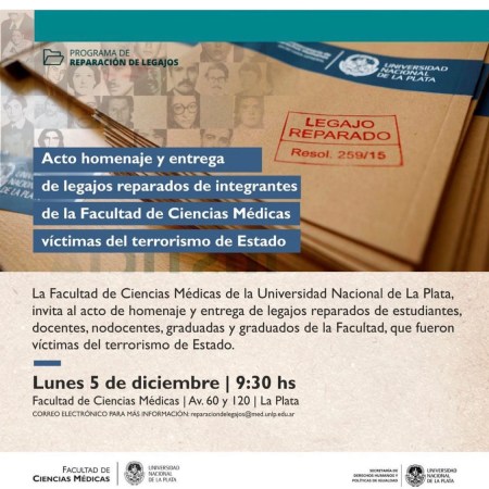 La Facultad de Ciencias Médicas de la UNLP hará un acto homenaje y entrega de legajos reparados