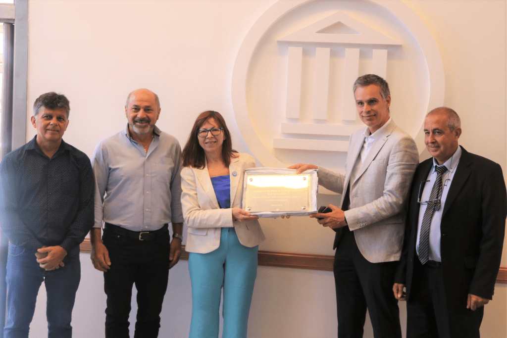 En el marco del aniversario 113 de la sucursal del Banco Nación de nuestro distrito, el Intendente Mario Secco recibió a la presidenta de la entidad, Silvina Batakis, quien entregó una placa conmemorativa.