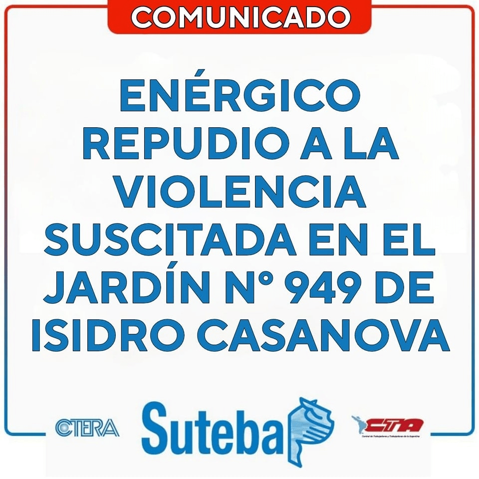 ENÉRGICO REPUDIO A LA VIOLENCIA SUSCITADA EN EL JARDÍN N° 949 DE ISIDRO CASANOVA