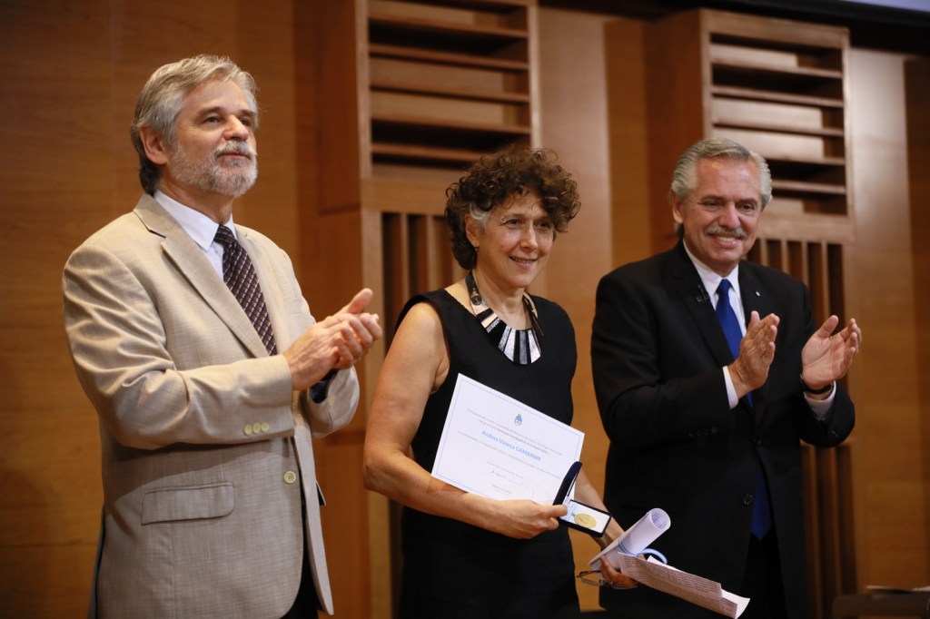 Un premio que entregó el presidente Alberto Fernández a la bioquímica Dra. Andrea Gamarnik por el desarrollo del primer kit nacional para medir anticuerpos contra el coronavirus que se distribuyó en todo el país.