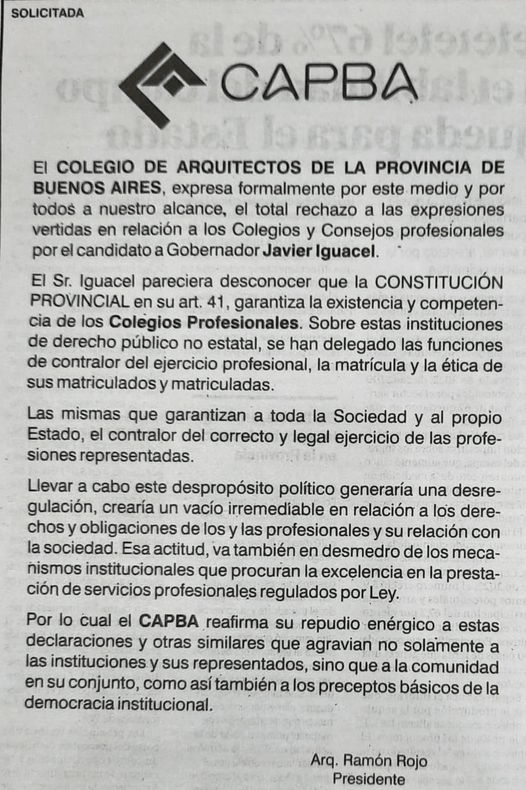 Compartimos solicitada del CAPBA publicada en el Diario El Día de La Plata el día 19 de enero.