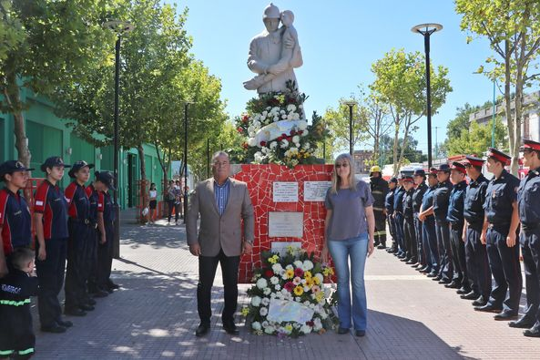 El intendente interino, Luis Blasetti, acompañó al cuerpo activo y a la comisión directiva de la institución con la entrega de una ofrenda floral en nombre del Municipio.