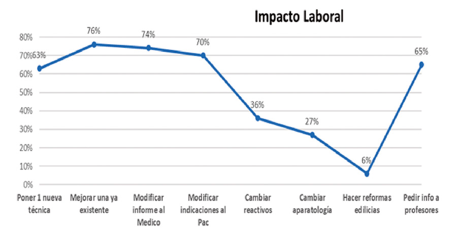 Podemos ver en el Gráfico 2, que más del 70% podrá implementar una nueva técnica, mejorar una ya existente, modificar el informe al médico o las indicaciones a los pacientes.