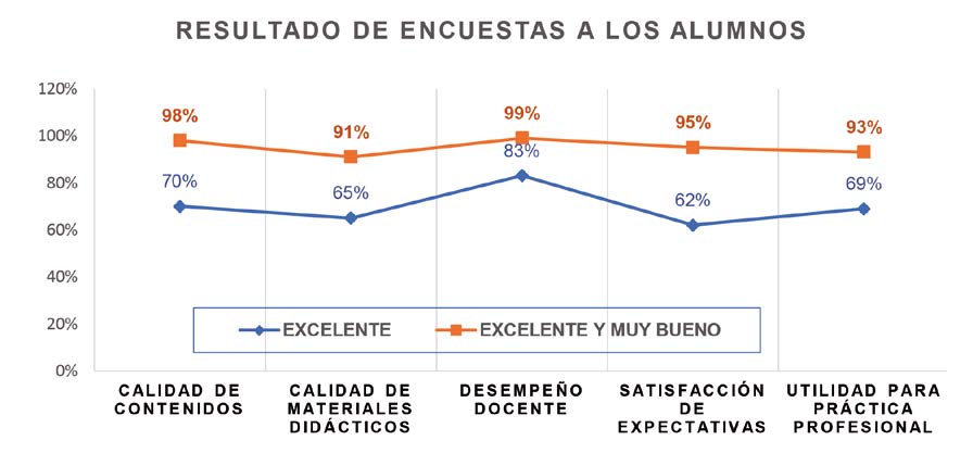 Todos los aspectos evaluados recibieron más del 90% de aceptación. Puede verse que el pico de excelencia se lo lleva el desempeño docente (Graf. 3).