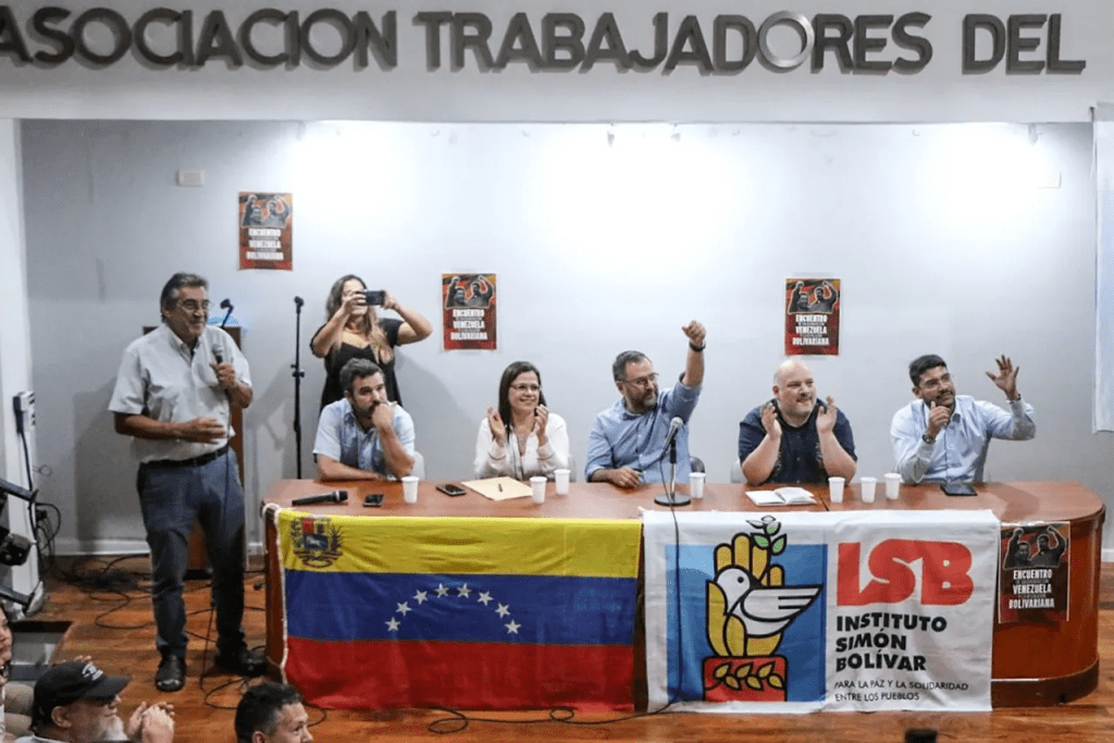 Por su parte, el Canciller de la República Bolivariana de Venezuela, Yván Gil Pinto, manifestó: “Como ustedes saben, el Presidente Maduro tenía una expectativa muy grande de venir. Nos había pedido incluso realizar un acto de masas para encontrarse con el pueblo argentino, para encontrarse con el pueblo latinoamericano, y para poder transmitir directamente esa emoción, esa energía, esa fuerza con la que hoy nos levantamos. Quiero saludar al compañero ‘Cachorro’ y a los compañeros y compañeras de los sindicatos y organizaciones sociales y de campesinos y campesinas”.