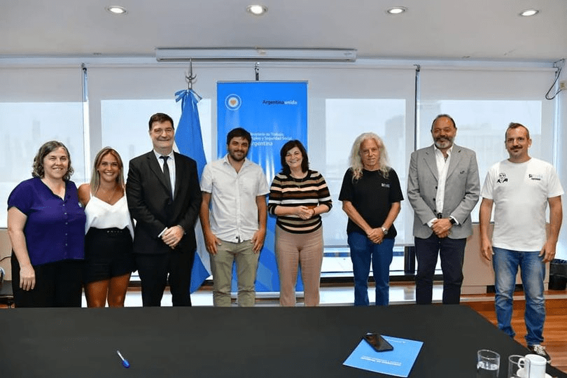 En una reunión entre la Ministra de Trabajo, Kelly Olmos , junto a su equipo, y les compañeres de nuestra dirigencia, “Tato” Dondero, Agustín Lecchi, Carla Gaudensi, Ana Paoletti y “Paco” Rabini en la sede de Alem del Ministerio de Trabajo Empleo y Seguridad Social quedó oficializada nuestra conquista histórica: ¡GANAMOS LA PERSONERÍA GREMIAL!