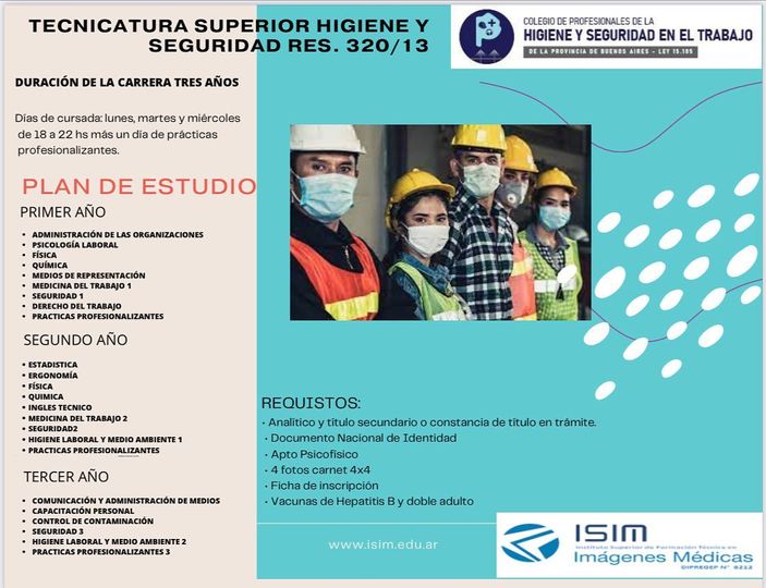 El Colegio de Profesionales de la Higiene y Seguridad en el Trabajo provincia de Buenos Aires acompaña la carrera de Higiene y Seguridad- en el Instituto Superior de Formación Técnica en Imágenes Médicas I.S.F.T EN IMÁGENES MEDICAS]