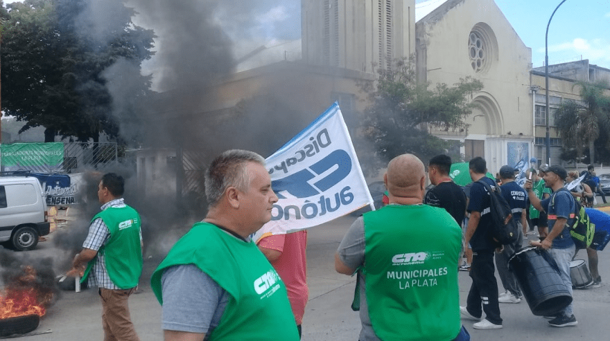 Las y los trabajadores de la municipalidad de La Plata protagonizaron la segunda jornada de protesta, en el marco de un paro por 48 horas de paro, que contó con un corte de calle con asamblea masiva frente al cementerio.