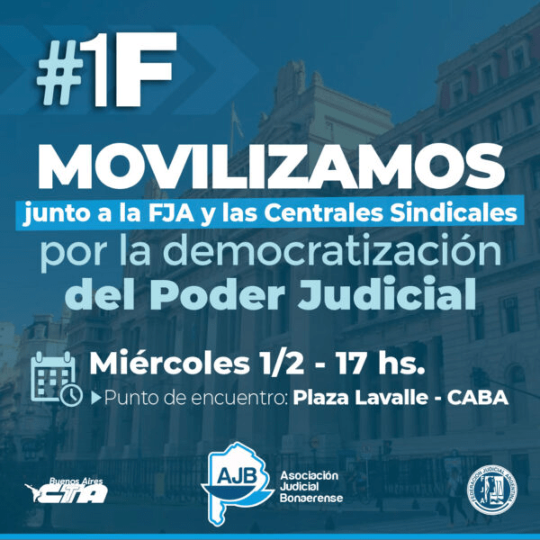 Desde la AJB convocamos a sumarnos a la movilización convocada este 1° de febrero por la Federación Judicial Argentina y las Centrales Sindicales para continuar impulsando nuestro reclamo histórico de Democratización del Poder Judicial.