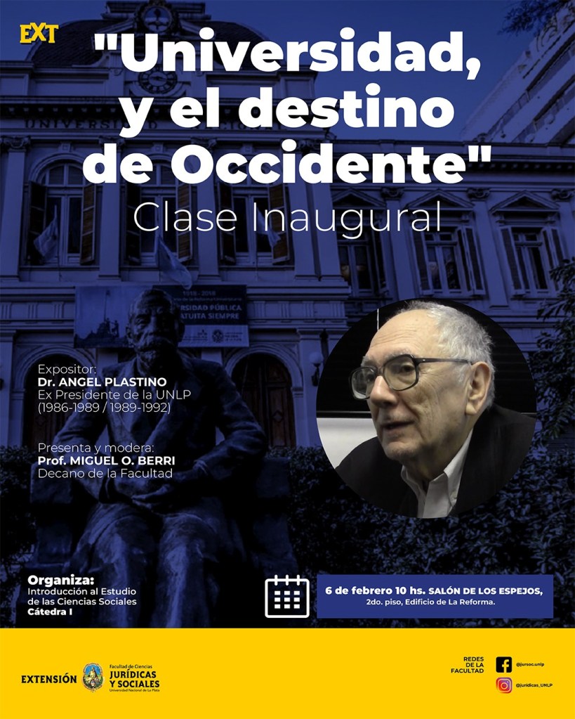 La Secretaría de Extensión Universitaria invita a participar de la clase inaugural «Universidad y el destino de Occidente» el día 6 de febrero a las 10 hs. en el Salón de los Espejos (2° piso, Edificio de la Reforma).