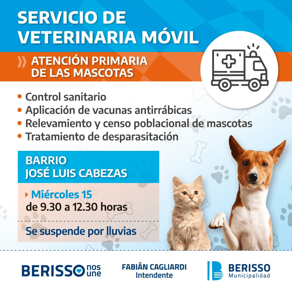 El Servicio de Veterinaria Móvil estará presente en el Barrio José Luis Cabezas