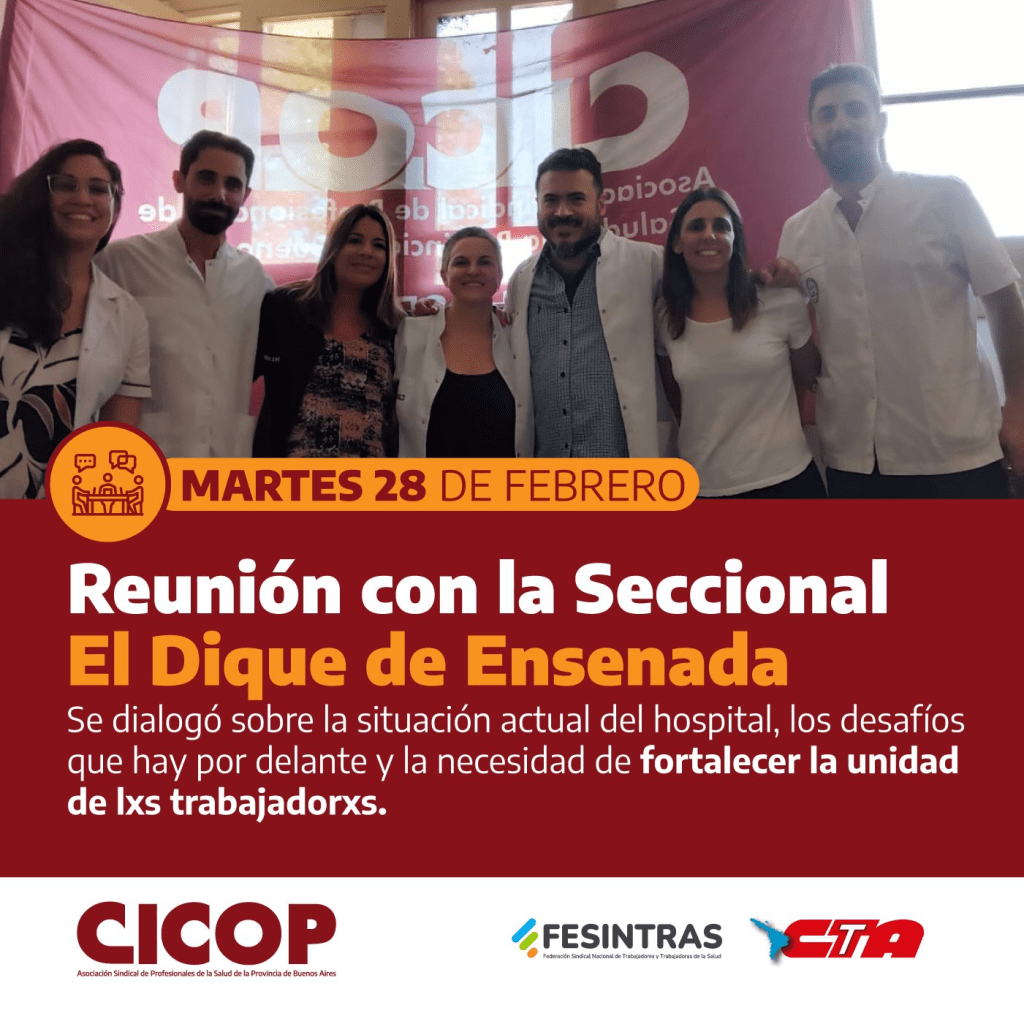 Autoridades provinciales de CICOP se reunieron hoy con integrantes de la Comisión Directiva del gremio en el Hospital El Dique de Ensenada.