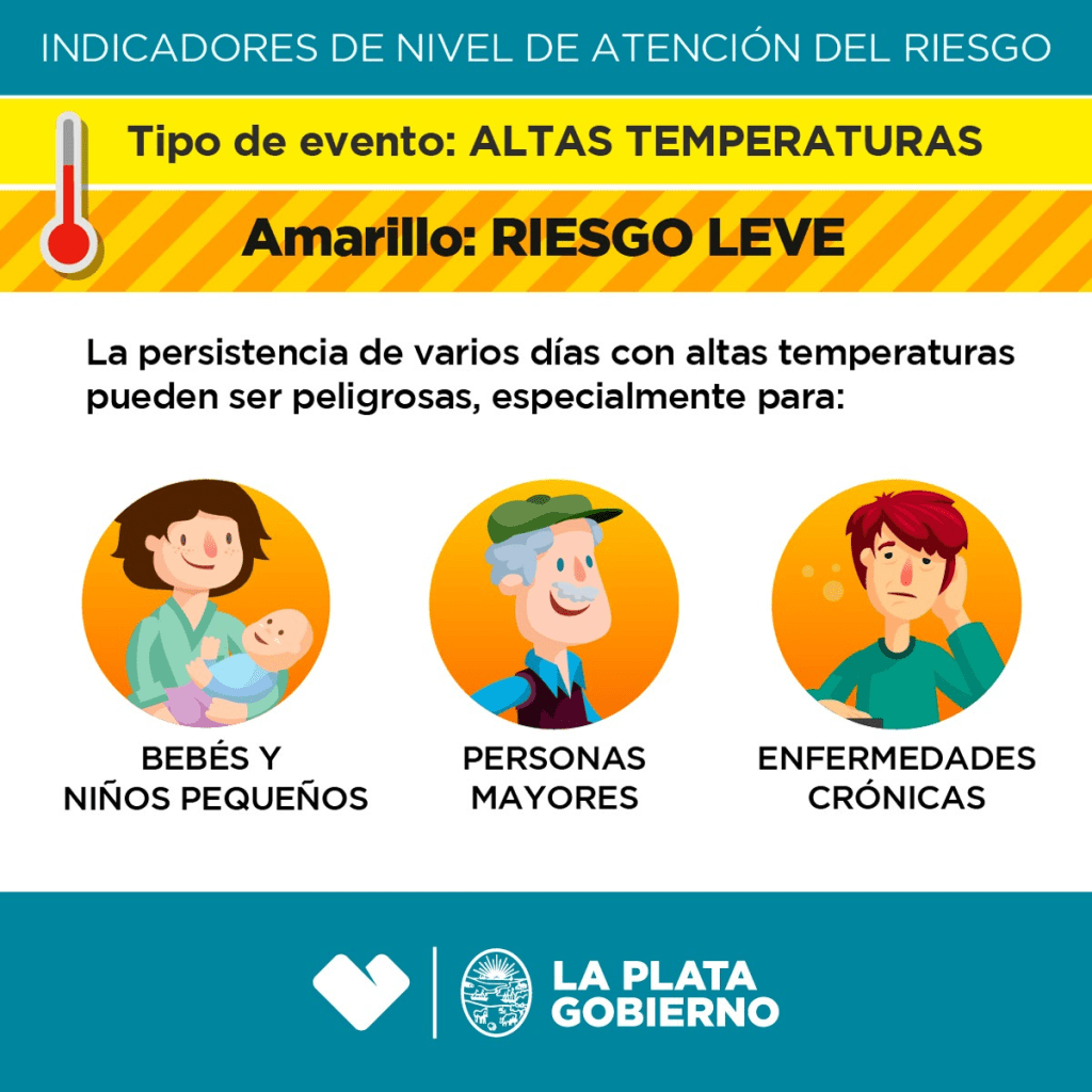 Producto de las temperaturas elevadas que registra la Ciudad, la Municipalidad de La Plata extendió el Nivel de Atención del Riesgo ‘Amarillo’ hasta el miércoles inclusive. Reiteran recomendaciones para prevenir golpes de calor y deshidratación.