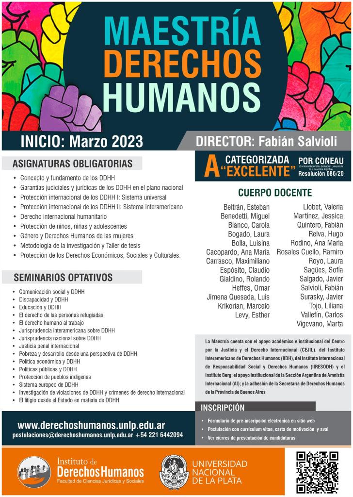 Las personas interesadas en presentar sus candidaturas podrán hacerlo a través de la página web http://www.derechoshumanos.unlp.edu.ar/es/