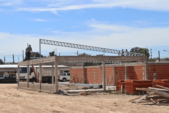 En esta oportunidad, se desarrolla la colocación del techo del SUM de usos múltiples que tendrá el predio, que además contará con un Centro de Dia con atención de salud primaria y terapéutica, pileta climatizada, vivero, gimnasio y quincho.