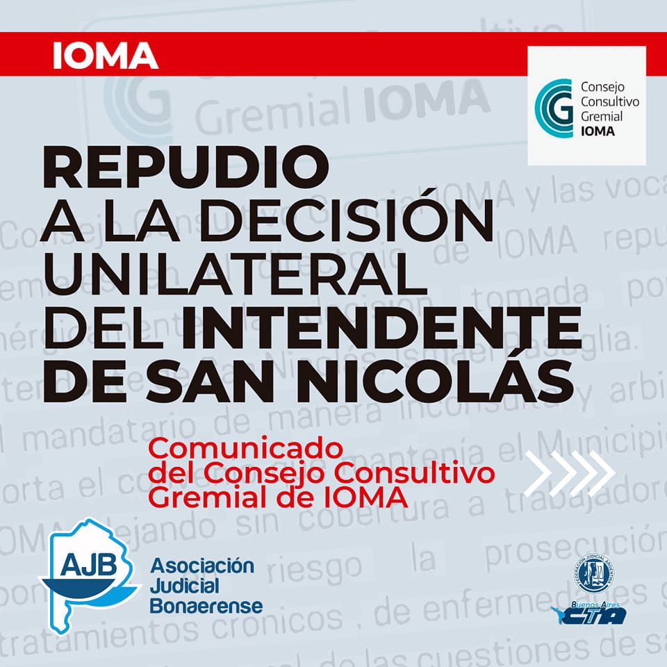 El Consejo Consultivo Gremial IOMA y las vocalías gremiales en el Directorio de IOMA repudian enérgicamente la decisión tomada por el intendente de San Nicolás, Manuel Passaglia.