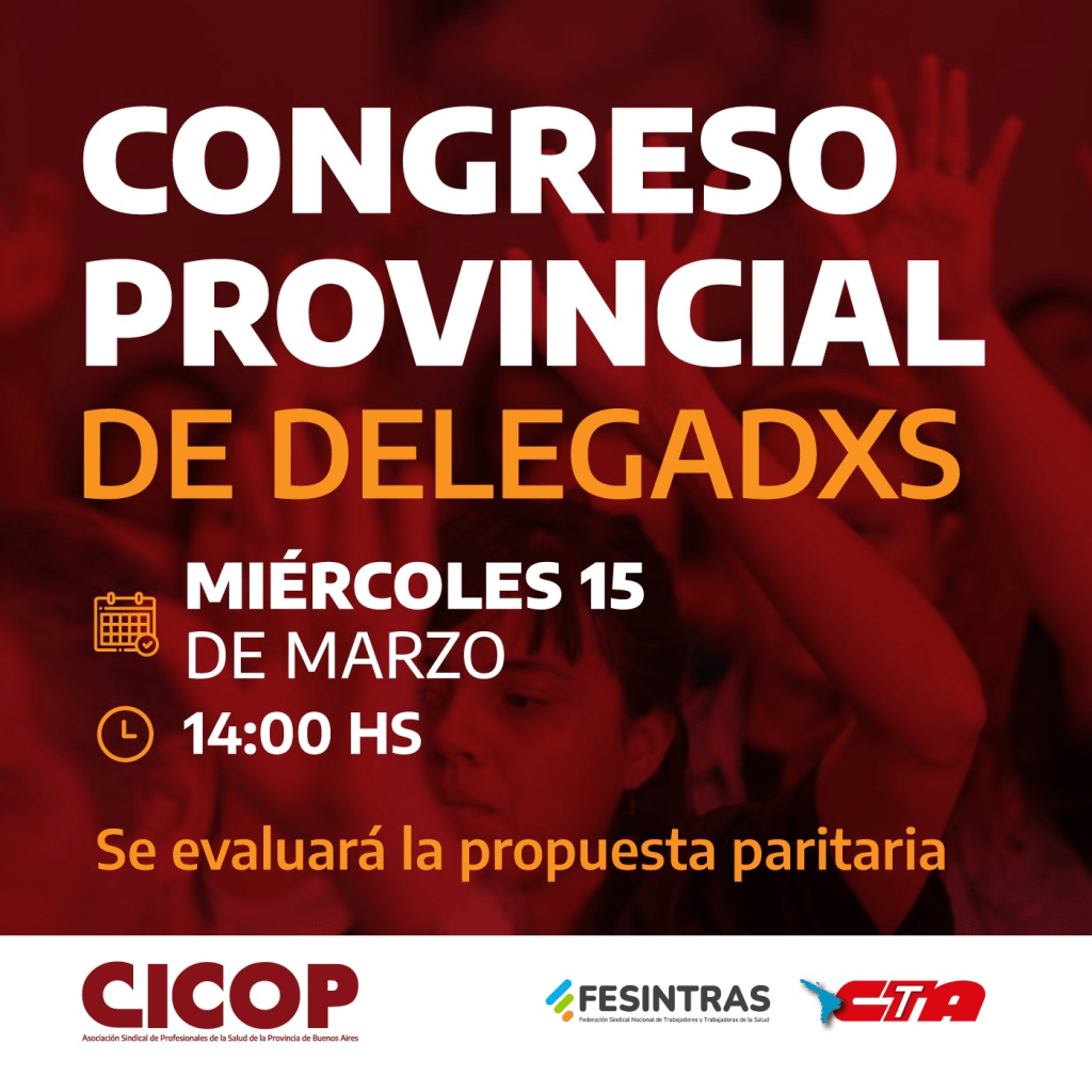 13 marzo, 2023 clipurbanodenoticias El Congreso Provincial de Delegados de CICOP evaluará la propuesta paritaria /Fuente: CICOP/ CONGRESO PROVINCIAL DE DELEGADXS Miércoles 15 de marzo a las 14 horas Se evaluará la propuesta paritaria Comparte esto: Compartir en X (Se abre en una ventana nueva) X Comparte en Facebook (Se abre en una ventana nueva) Facebook Más Compartir en LinkedIn (Se abre en una ventana nueva) LinkedIn Compartir en Tumblr (Se abre en una ventana nueva) Tumblr Haz clic en Pinterest (Se abre en una ventana nueva) Pinterest Compartir en Telegram (Se abre en una ventana nueva) Telegram Compartir en WhatsApp (Se abre en una ventana nueva) WhatsApp Me gusta Cargando...