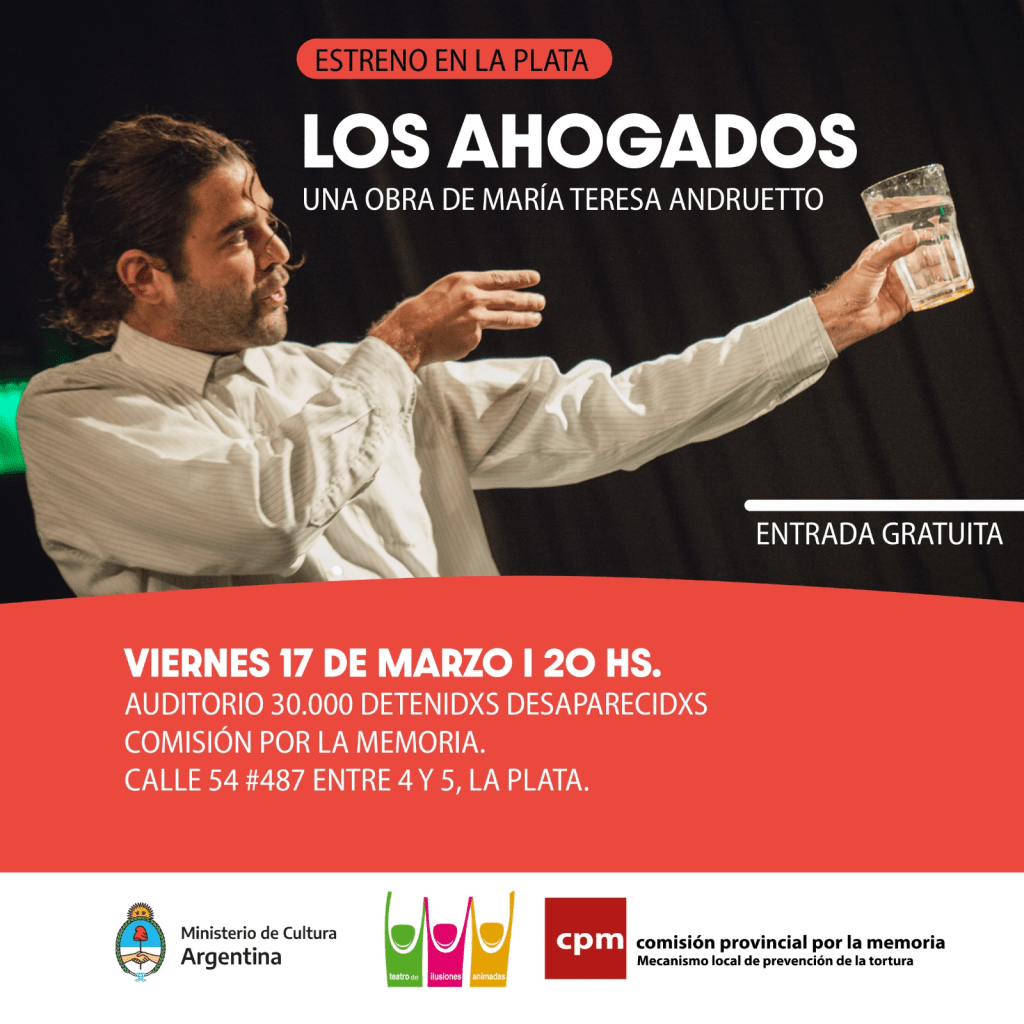 En el mes de la memoria, este VIERNES 17 presentamos en nuestro auditorio la obra de teatro «LOS AHOGADOS» de María Teresa Andruetto.