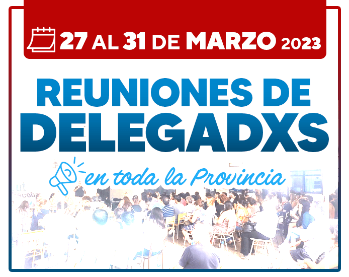 Del 27 al 31 de marzo de 2023, desde el SUTEBA llevaremos adelante Reuniones de Delegadxs en cada Seccional, Delegación y Junta Promotora de los distritos de nuestra Provincia.