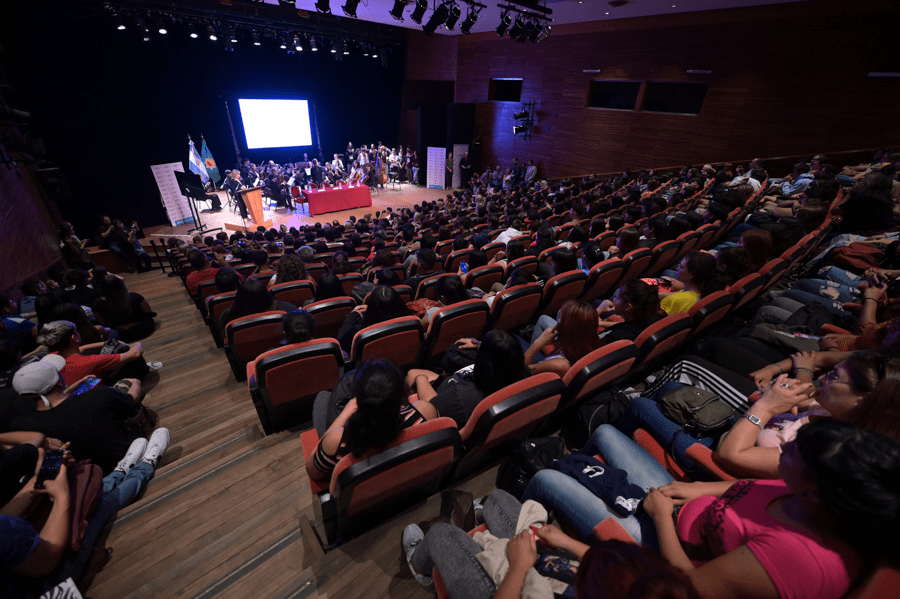 «Educación como práctica de la democracia» fue la consigna de la actividad desarrollada y fue encabezada por sus organizadoras, la diputada Fernanda Díaz y la senadora María Reigada, quienes dieron muestras de alegría ante la gran concurrencia de estudiantes adolescentes provenientes de distintos colegios bonaerenses.