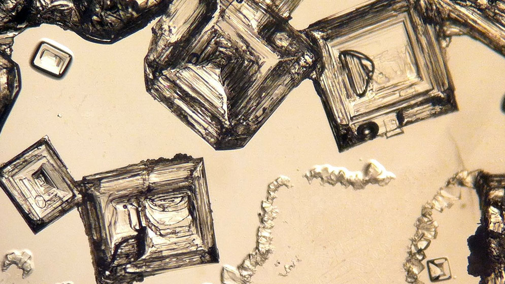 Abrevaya y colegas se centraron en un tipo de cristal de sal, en particular uno llamado halita (compuesto por cloruro de sodio cuya fórmula es NaCl) porque se los ha encontrado en meteoritos (por ejemplo, en uno de Marte llamado Nakhla) y porque en la naturaleza se han hallado microorganismos atrapados en su interior, un proceso que ocurre naturalmente tanto en la Tierra actual, como en el pasado.