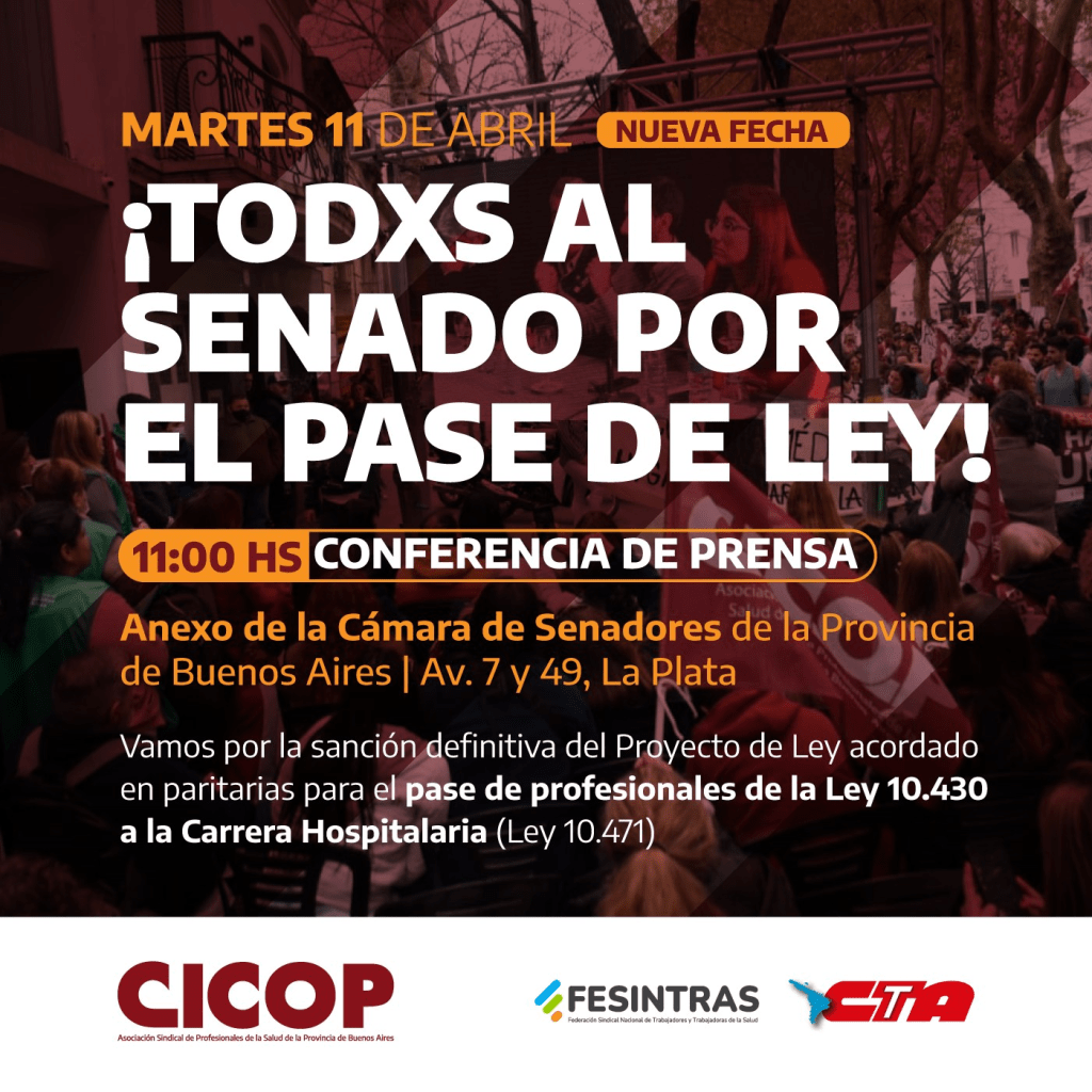 Vamos por la sanción definitiva del Proyecto de Ley acordado en paritarias para el pase de profesionales de la Ley 10.430 a la Carrera Hospitalaria (Ley 10.471)