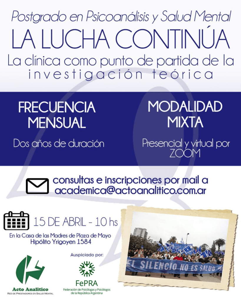 Posgrado en Psicoanálisis y Salud Mental en La Casa de las Madres de Plaza de Mayo: La lucha continúa