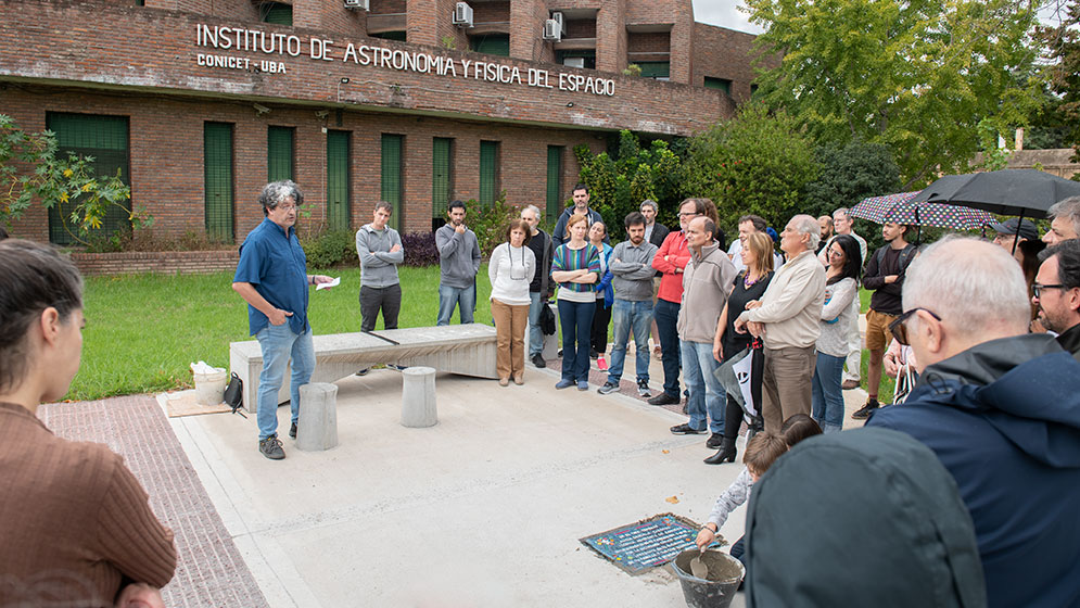 Por su parte, el director del IAFE Daniel Gómez, explicó: “A tono con el camino iniciado por la Comisión de la Memoria de CONICET, en el IAFE nos propusimos realizar un primer acto de reparación para Alicia, a través de la colocación de una baldosa frente al Instituto. Quienes trabajamos hoy en el IAFE no conocimos a Alicia, y tampoco supimos de su existencia hasta hace un año atrás, y queremos comenzar a reparar institucionalmente esta situación”.