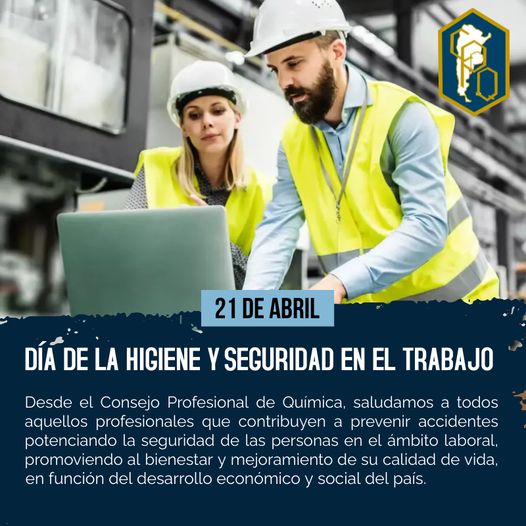 Desde el Consejo Profesional de Química, saludamos a todos aquellos Profesionales que contribuyen a prevenir accidentes potenciando la seguridad de las personas en el ámbito laboral, promoviendo al bienestar y mejoramiento de su calidad de vida, en función del desarrollo económico y social del País.