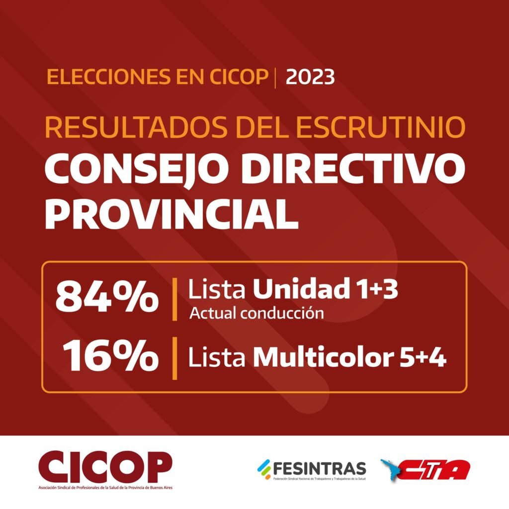 Lxs trabajadorxs de la salud nucleadxs en la Asociación Sindical de Profesionales de la Salud de la Provincia de Buenos Aires (CICOP) ratificaron en los comicios que concluyeron hoy a la actual conducción del gremio para el próximo período 2023-2026.