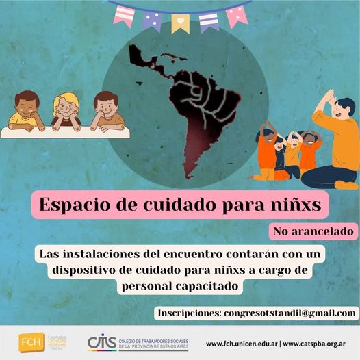 Informamos que en el marco del desarrollo del V Encuentro Latinoamericano de Trabajo Social se dispondrá de un dispositivo de cuidado para niñxs, favoreciendo de este modo la participación en las actividades previstas.