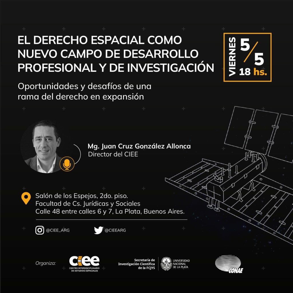 La Secretaría de Investigación Científica de la Facultad de Ciencias Jurídicas y Sociales de la UNLP, los/as invita a participar de la Jornada «EL DERECHO ESPACIAL COMO NUEVO CAMPO DE DESARROLLO PROFESIONAL Y DE INVESTIGACIÓN» especialmente dedicado a fomentar la investigación científica e interdisciplinaria así como la enseñanza del derecho en este nuevo campo de aplicación, la cual se llevara a cabo el día viernes 5 de mayo a las 18 hs.