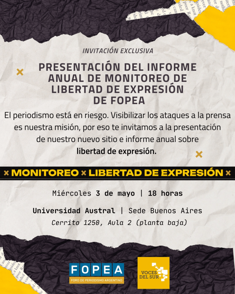 28 abril, 2023 clipurbanodenoticias La Asociación de Sociólogos invita a la presentación del informe anual de FOPEA sobre libertad de expresión /Fuente: Asociación de Sociólogos de la República Argentina/ ASRA RECOMIENDA: Comparte esto: Compartir en X (Se abre en una ventana nueva) X Comparte en Facebook (Se abre en una ventana nueva) Facebook Más Compartir en LinkedIn (Se abre en una ventana nueva) LinkedIn Compartir en Tumblr (Se abre en una ventana nueva) Tumblr Haz clic en Pinterest (Se abre en una ventana nueva) Pinterest Compartir en Telegram (Se abre en una ventana nueva) Telegram Compartir en WhatsApp (Se abre en una ventana nueva) WhatsApp Me gusta Cargando...