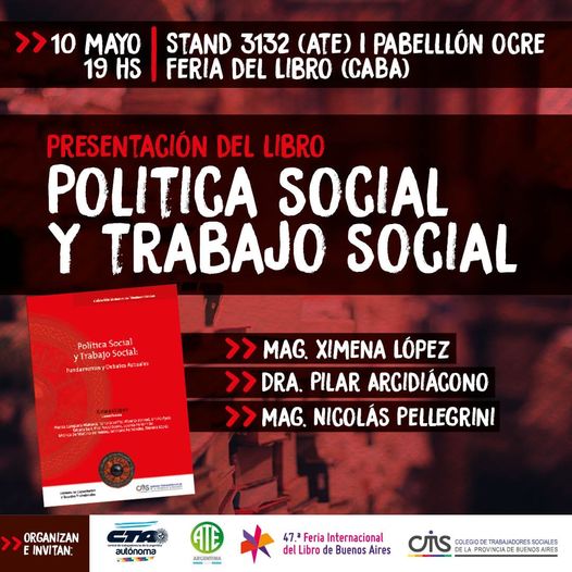 Recordamos que el próximo miércoles estaremos participando en la Feria del Libro con la presentación del libro: «Política Social y Trabajo Social. Fundamentos y Debates Actuales», compilado por Ximena López.