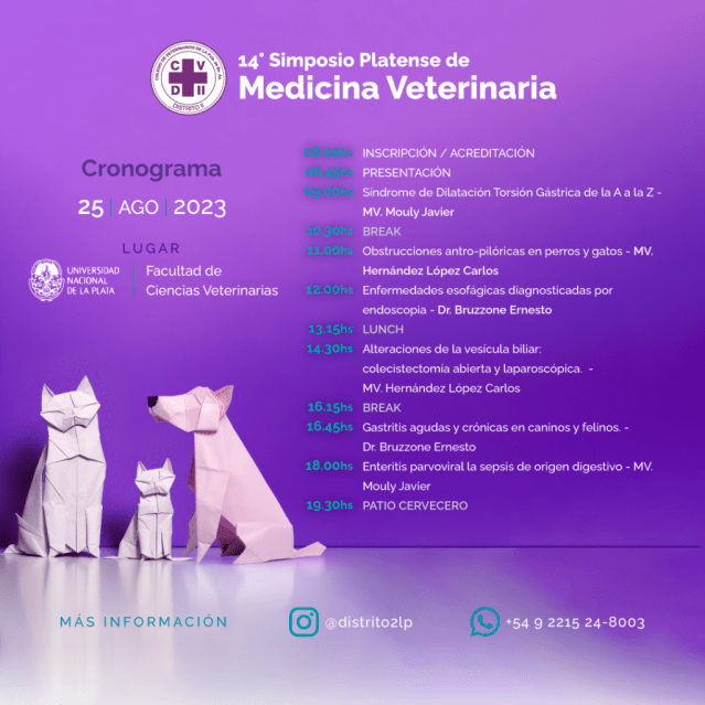 El Distrito 2 del CVPBA organiza el 14° Simposio Platense de Medicina Veterinaria, evento que se realizará en la Facultad de Veterinaria de la Universidad Nacional de La Plata (UNLP).
