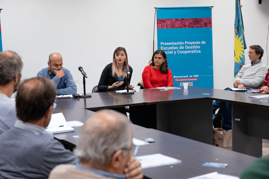 Participaron: Natalia Bragagnolo, Directora provincial de Políticas Socioeducativas; Silvio Maffeo y Mariana Galarza (Consejo General de Educación, PBA); Juan Giménez, presidente Feceaba; Lucas Franco, concejal Moreno FdT; Javier di Matteo, ex vicedecano del Departamento de Educación, UNLU; y Carina López Monja, directora del Programa de Educación Cooperativa del Inaes.