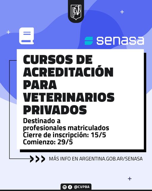 SENASA informó que se encuentra abierta la inscripción para los cursos para acreditación para veterinarios privados.