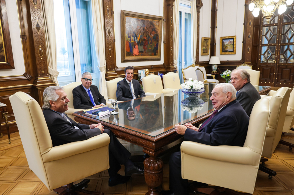 El presidente Alberto Fernández mantuvo una reunión hoy en Casa Rosada con el presidente de la Bolsa de Comercio de Buenos Aires, Adelmo Gabbi, y los nuevos directivos de la institución.