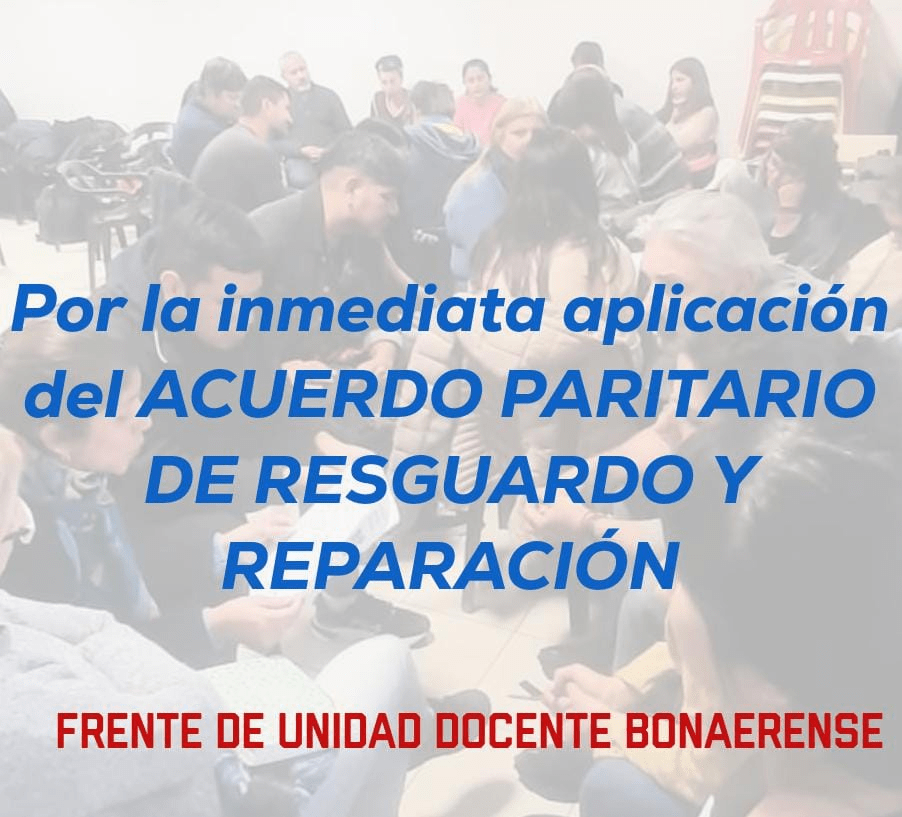 En el día de la fecha, el Frente de Unidad Docente Bonaerense hizo una presentación frente al Director General de Cultura y Educación, Alberto Sileoni, para reclamar la urgente implementación del Acuerdo Paritario de Resguardo y Reparación.