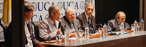 El evento de cierre del II Congreso Interuniversitario Laudato Si´ se efectuó este último sábado en la sede de la Universidad Católica Argentina en la Ciudad de Buenos Aires. Contó con la participación de Francisco Piñón, coordinador de la comisión organizadora de la actividad en representación de la Red Universitaria para el Cuidado de la Casa Común (RUCC); Rodolfo De Vincenzi, presidente del Consejo de Rectores de Universidades Privadas (CRUP) y rector de la Universidad Abierta Interamericana (UAI); Carlos Greco, presidente del Consejo Interuniversitario Nacional (CIN) y rector de la Universidad Nacional de San Martín (UNSAM); y Mons. Oscar Ojea, presidente de la Conferencia Episcopal Argentina (CEA).