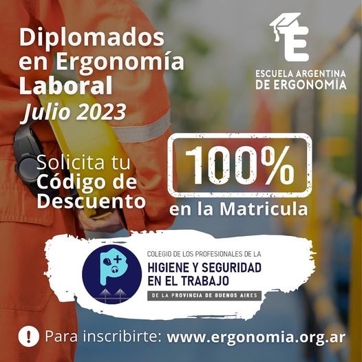 Ya esta abierta la inscripción para la Segunda Edición del Ciclo 2023 de los Diplomados en Ergonomía Laboral a Distancia de la Escuela Argentina de Ergonomía