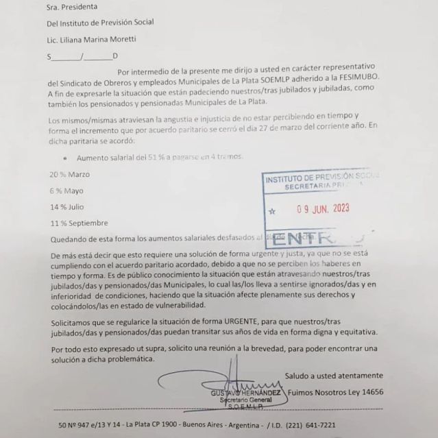 /Fuente: Sindicato de Obreros y Empleados Municipales de La Plata /