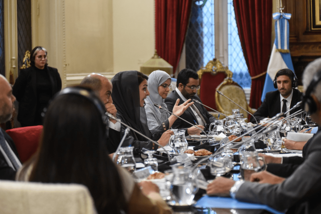 La ministra para la Cooperación Internacional de los Emiratos Árabes Unidos (EAU), Reem Al Hashimy, fue recibida en el Palacio Congreso por las autoridades e integrantes del Grupo Parlamentario de Amistad (GPA). El objetivo del encuentro de trabajo fue fortalecer los vínculos bilaterales entre ambas naciones a través de una agenda de diplomacia parlamentaria enfocada en el aumento y diversificación del comercio bilateral, la promoción de inversiones productivas, la identificación de proyectos regionales para el financiamiento de infraestructura, así como también la búsqueda de posiciones comunes en foros multilaterales en cuestiones de interés mutuo como género y el medio ambiente.
