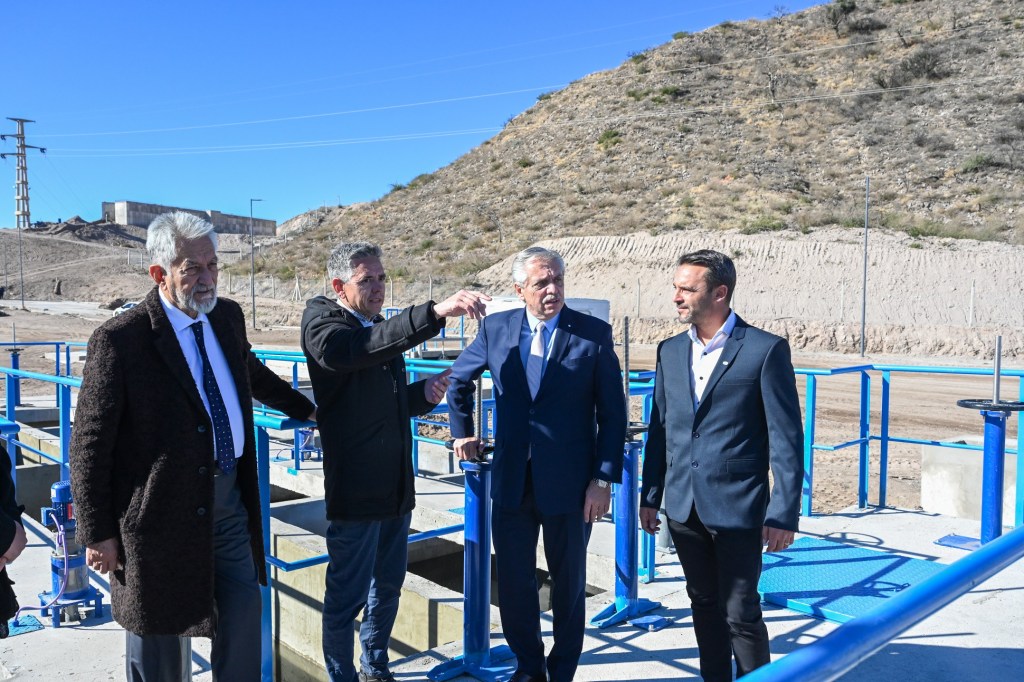 Luego, el jefe de Estado se dirigió a la Planta Potabilizadora Vientos del Portezuelo, donde lo recibieron también los ministros provinciales de obras públicas, Alberto Rodríguez Saá, y de seguridad, Claudio Latini.