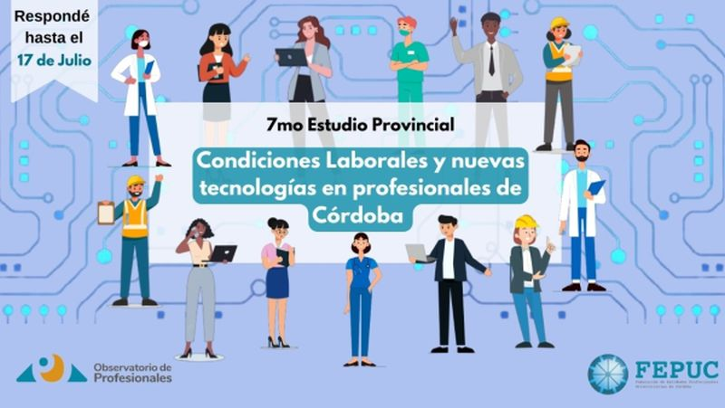 Lanzamos la séptima Encuesta del Observatorio de Profesionales de la FEPUC, titulada “Condiciones laborales y nuevas tecnologías en profesionales de Córdoba”, cuyo objetivo es obtener información sobre las condiciones laborales, percepción del uso de nuevas tecnologías en el trabajo y los desafíos que enfrentan en el mercado laboral los y las profesionales de la provincia de Córdoba.