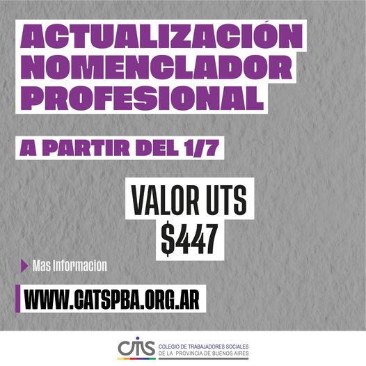 Unidad de Trabajo Social (UTS): Con el fin de operacionalizar la medición de las prestaciones profesionales, se define a la unidad de Trabajo Social como unidad mínima de valorización donde se articula tiempo de trabajo y el proporcional de cargas sociales (aportes jubilatorios, Obra Social y licencias ordinarias). Por su parte, la cantidad de UTS definida para cada prestación se define proporcionalmente a partir de la síntesis entre tiempo de trabajo necesario con la complejidad de la tarea según criterios consensuados por el Colegio Profesional.