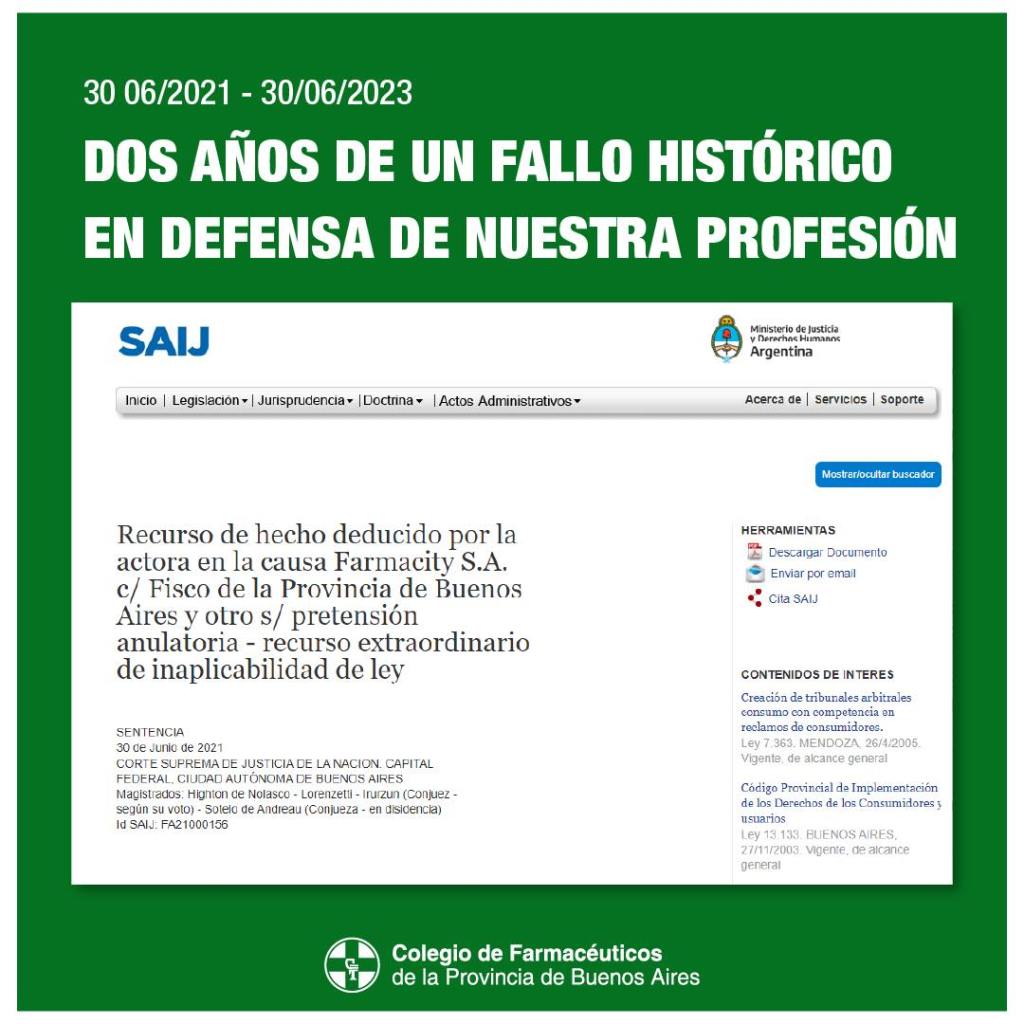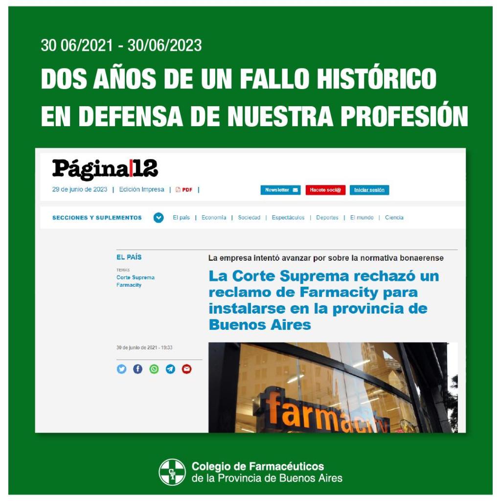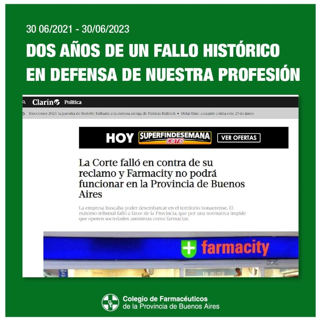 Se cumplieron dos años del fallo de la Corte Suprema que dictaminó la imposibilidad de la instalación de Farmacity en nuestra provincia y reafirmó lo establecido por la ley provincial 10.606.