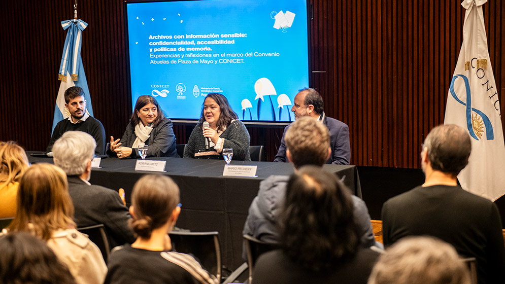 El Consejo Nacional de Investigaciones Científicas y Técnicas (CONICET) y la Asociación Civil Abuelas de Plaza de Mayo celebraron una jornada de trabajo que reflexionó sobre “Archivos con información sensible: confidencialidad, accesibilidad y políticas de memoria” en el marco de un convenio de asistencia técnica entre el Consejo y Abuelas. Participaron del acto de apertura la presidenta del CONICET Ana Franchi y la coordinadora e integrante del Archivo Institucional de Abuelas de Plaza de Mayo, filial Mar del Plata, Adriana Metz. La presidenta de Abuelas, Estela de Carlotto, hizo llegar sus palabras y participación a través de una emotiva carta.
