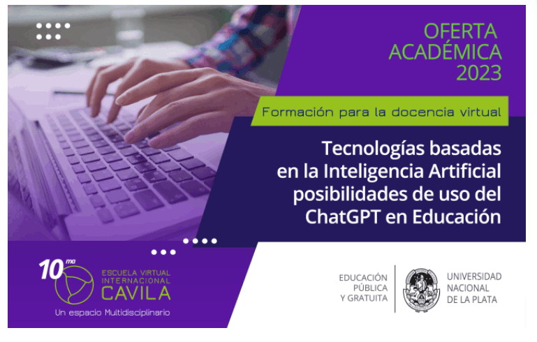 Desde la Prosecretaría de Políticas Digitales extendemos la invitación para participar del «Curso Tecnologías basadas en la Inteligencia Artificial posibilidades de uso del ChatGPT en Educación» que se enmarca en la oferta de formación de la Escuela Internacional CAVILA de la UNLP.